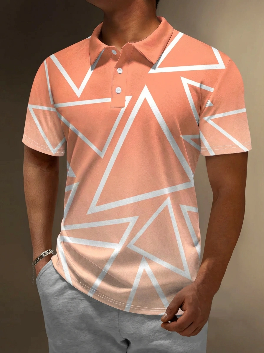 Moisture-wicking Peach White Geometric Triangle Line Button Short Sleeve Golf Polo Shirt