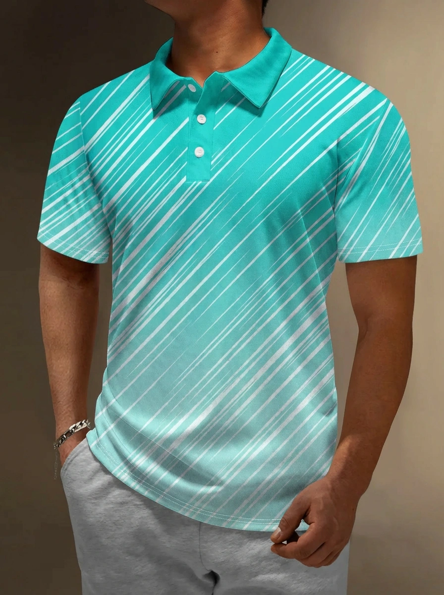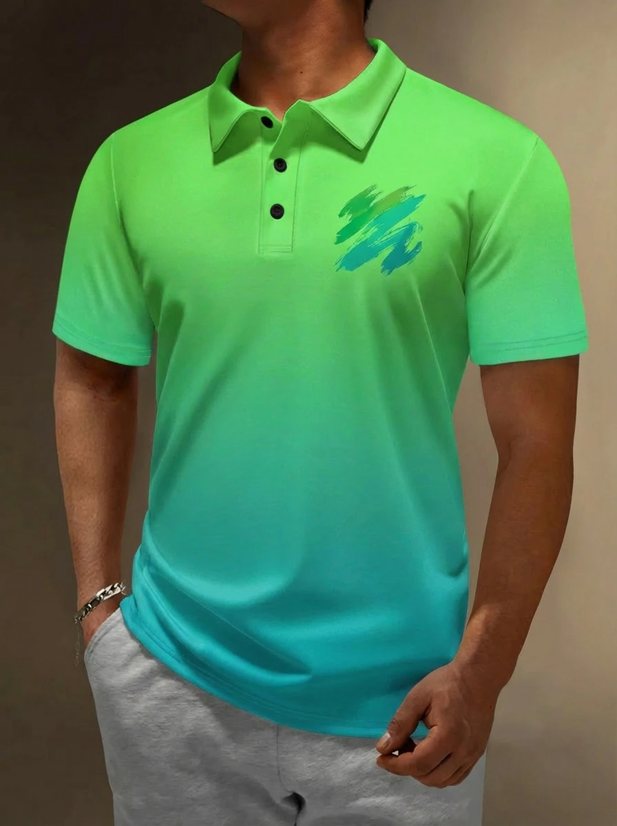 Moisture-wicking Green Cyan Ombre Abstract Brushstroke Graphic Button Short Sleeve Golf Polo Shirt