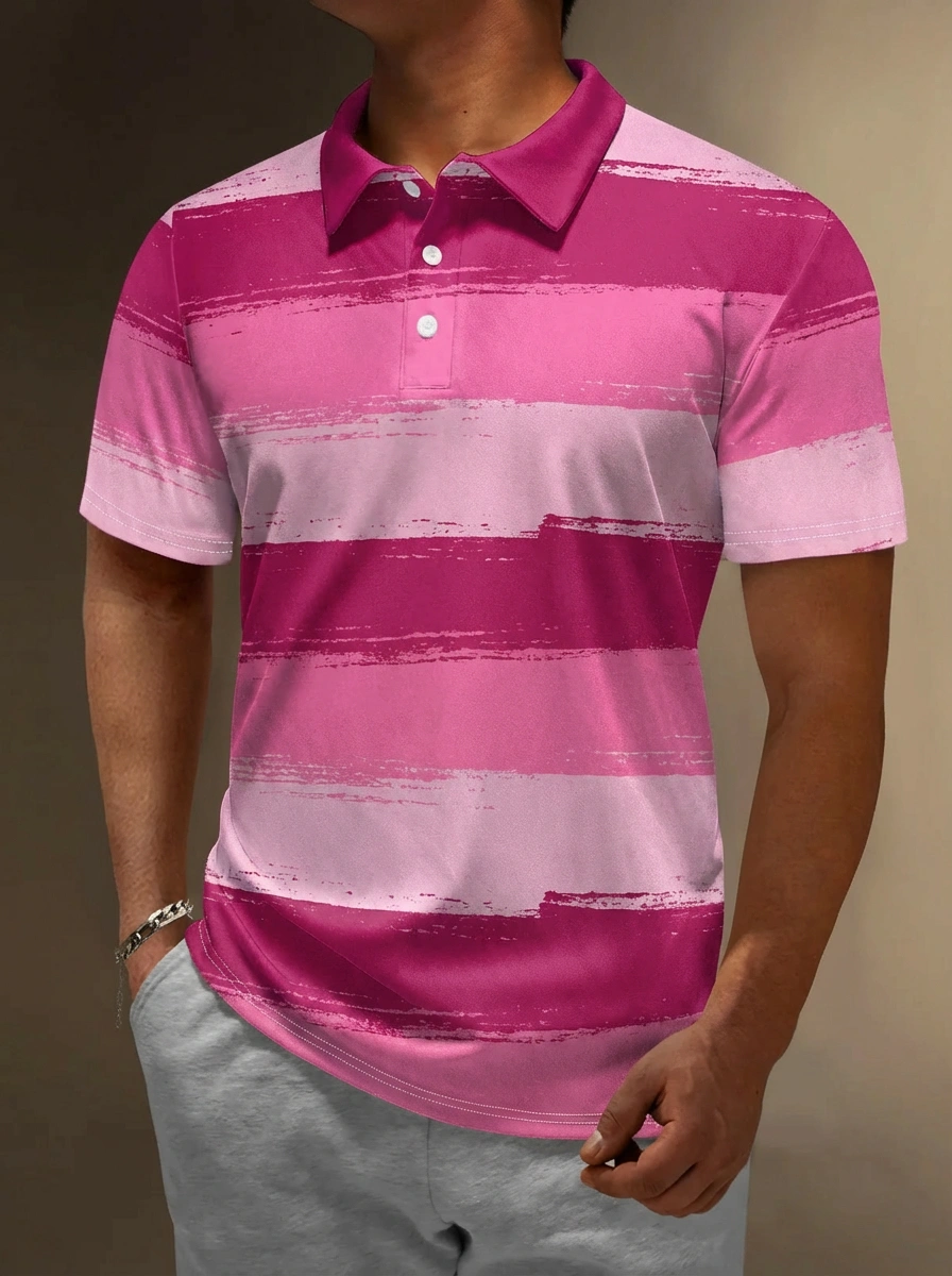 Moisture-wicking Pink Purple Gradient Brushstroke Stripe Button Short Sleeve Golf Polo Shirt