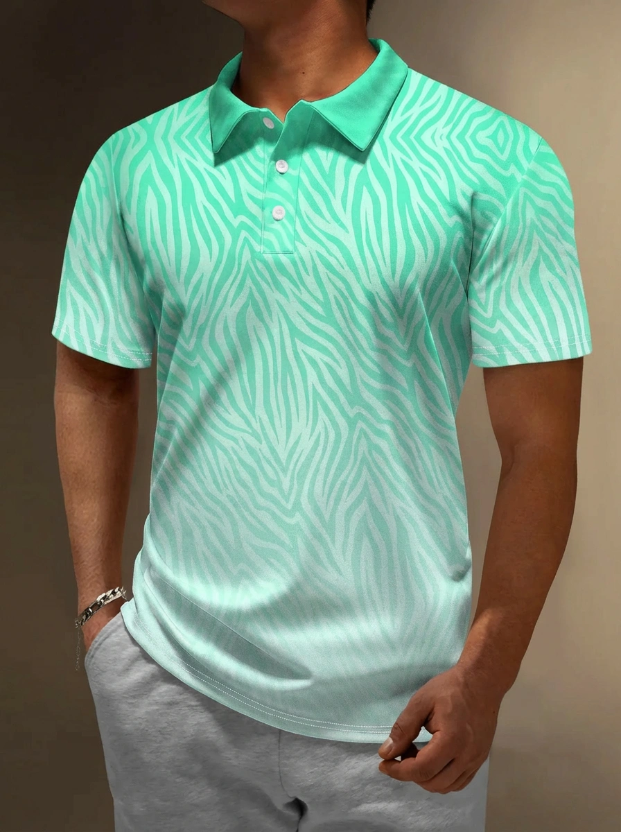 Moisture-wicking Mint Green Zebra Stripe Pattern Button Short Sleeve Golf Polo Shirt