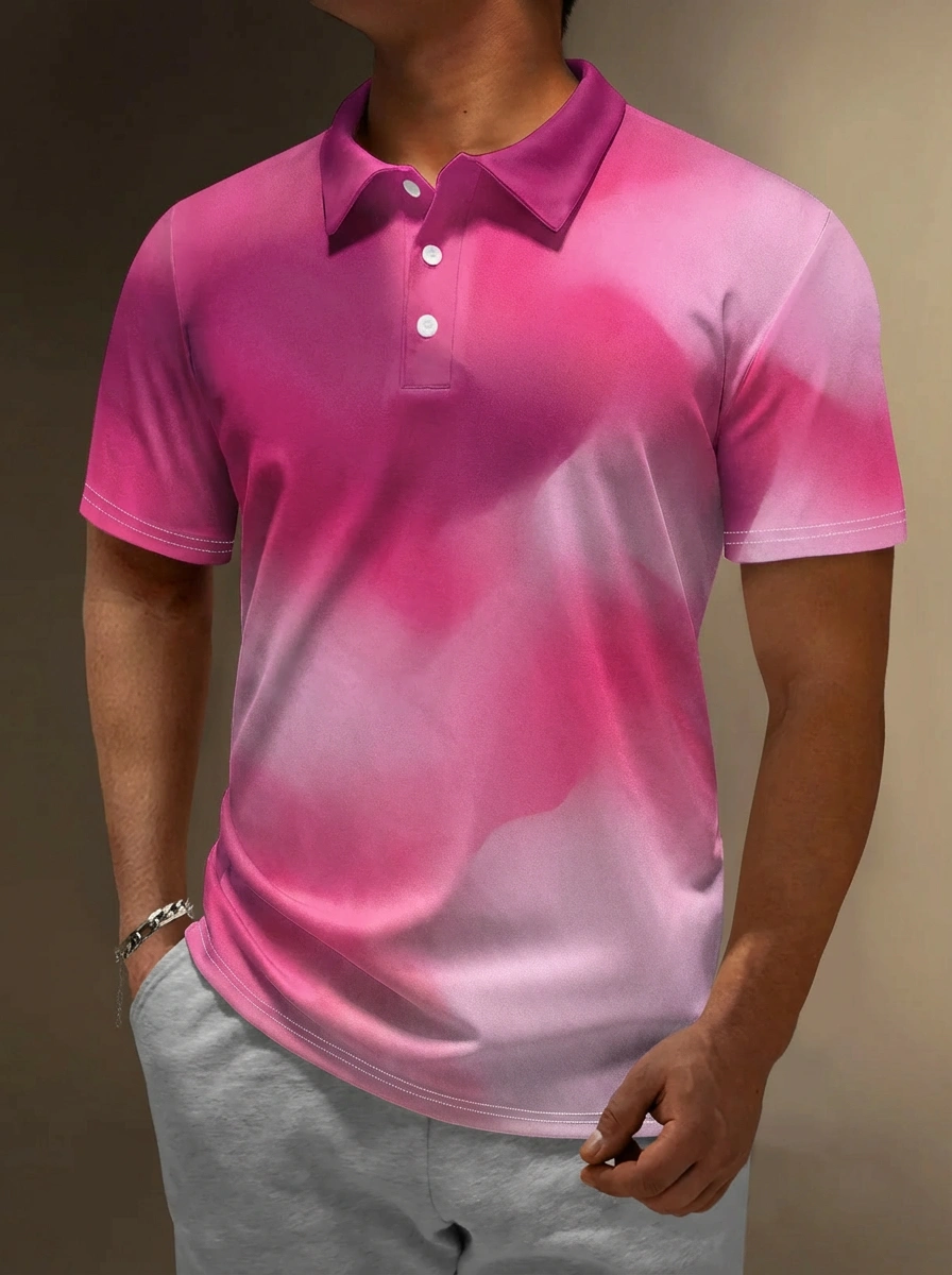Moisture-wicking Pink Purple Tie-Dye Ombre Button Short Sleeve Golf Polo Shirt