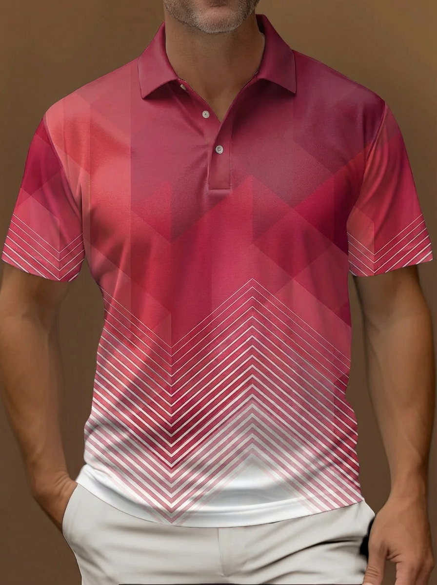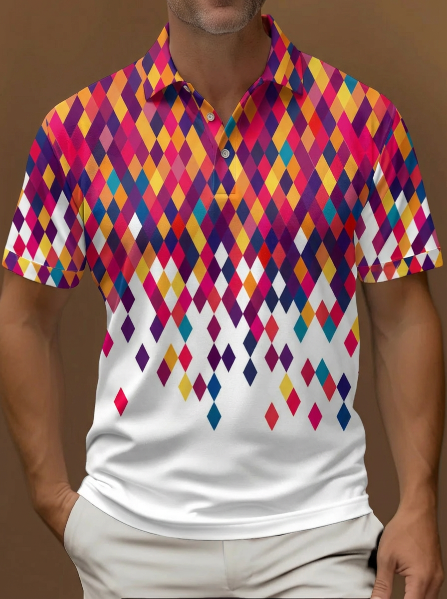 Abstract Colorful Gradient Art Geometric Pattern Patchwork Printing Short Sleeve Polo