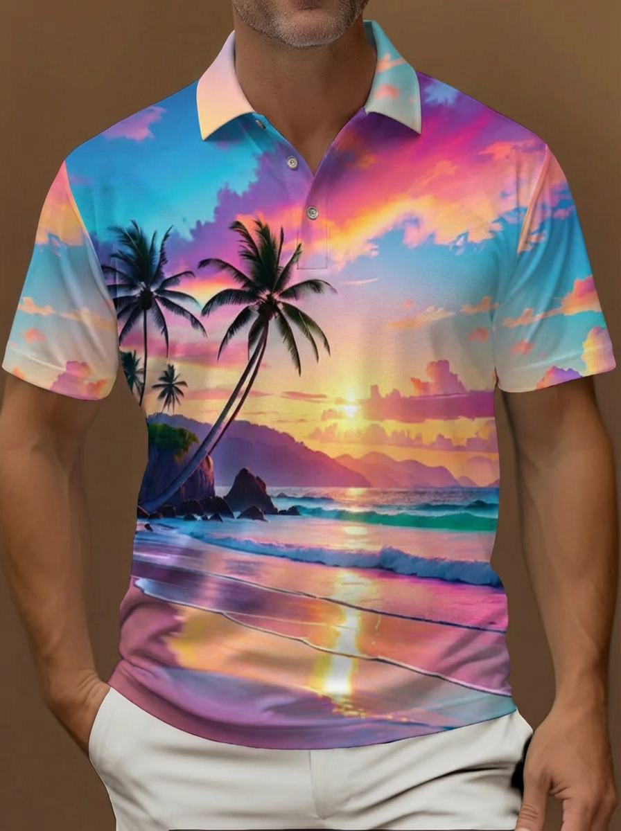 Cool Tropical Sunset With Palm Trees On The Beach Printing Short Sleeve Polo