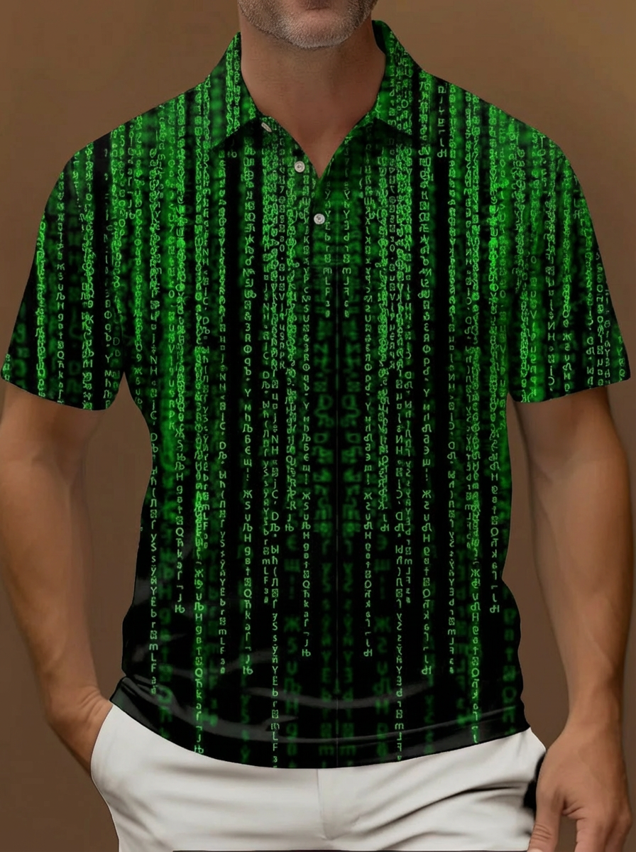 Tech Information Technology Matrix Background Printing Short Sleeve Polo