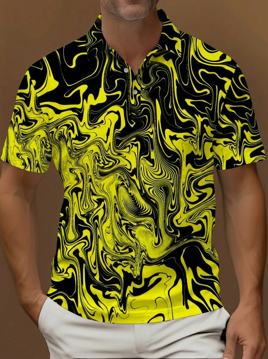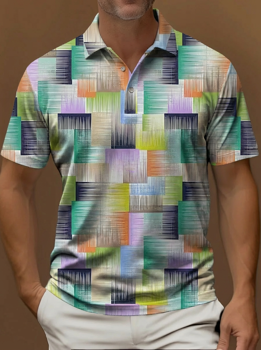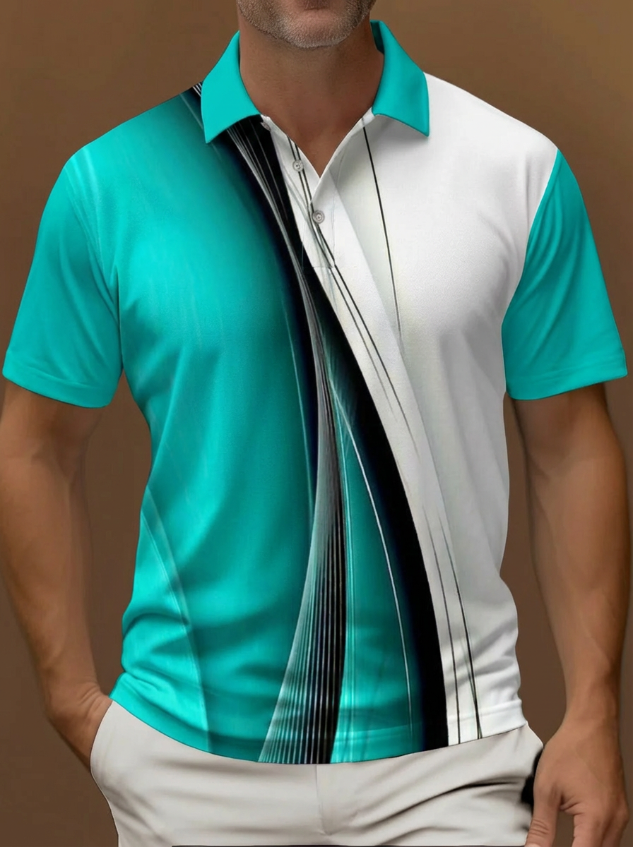 Contrast Color Business Casual Print Art Summer Short Sleeve Stretch Men's Polo Shirt