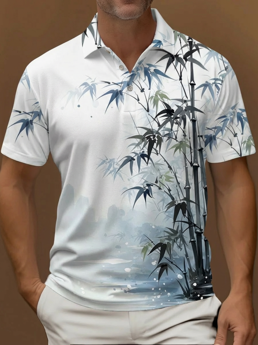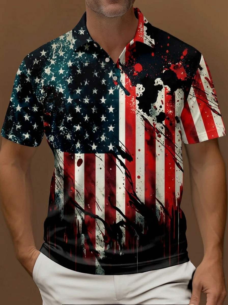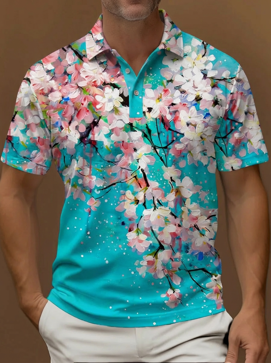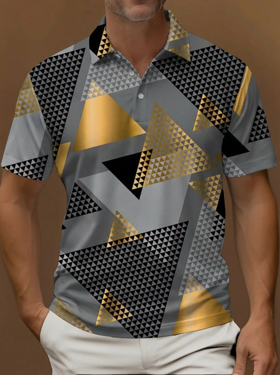 Contrast Color Business Casual Print Art Summer Short Sleeve Stretch Men's Polo Shirt