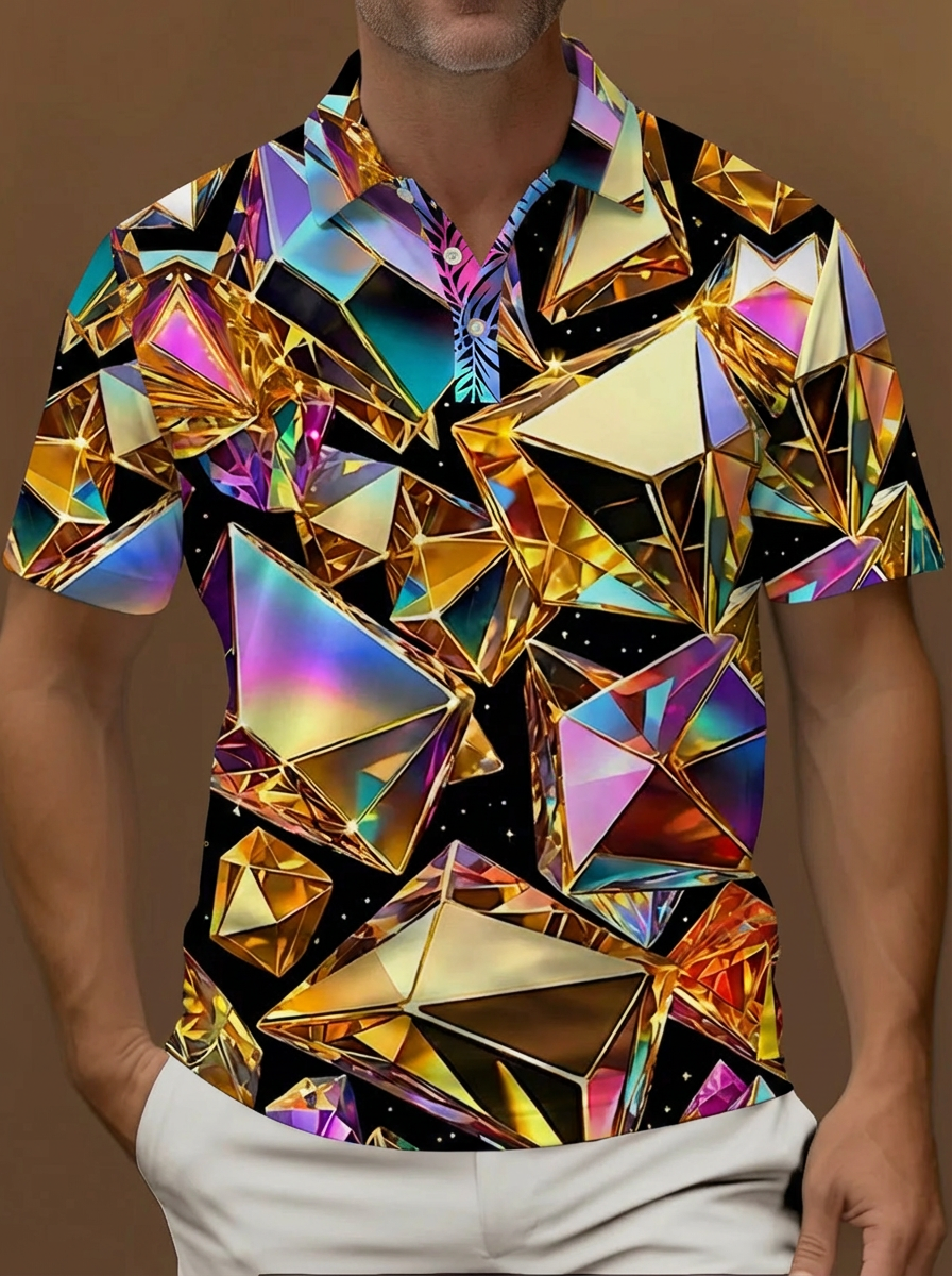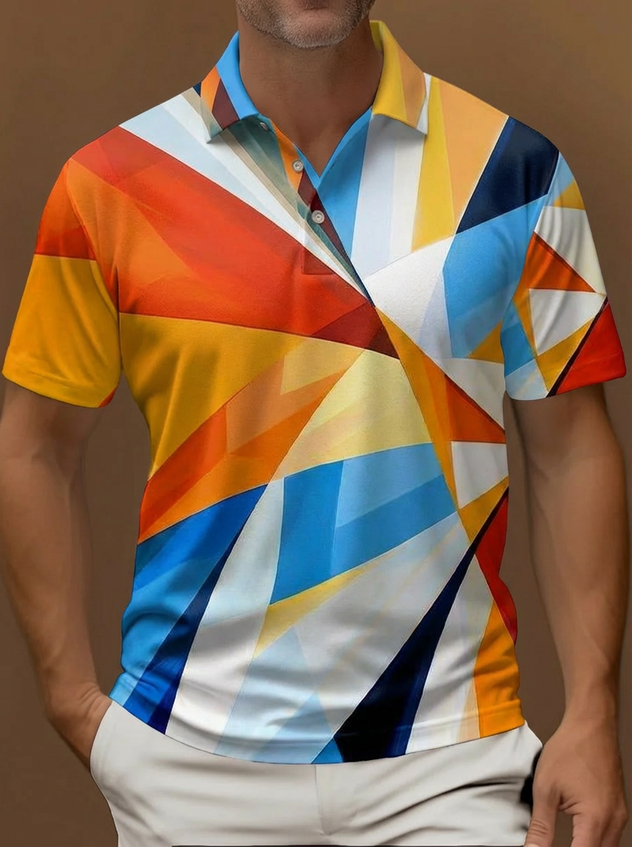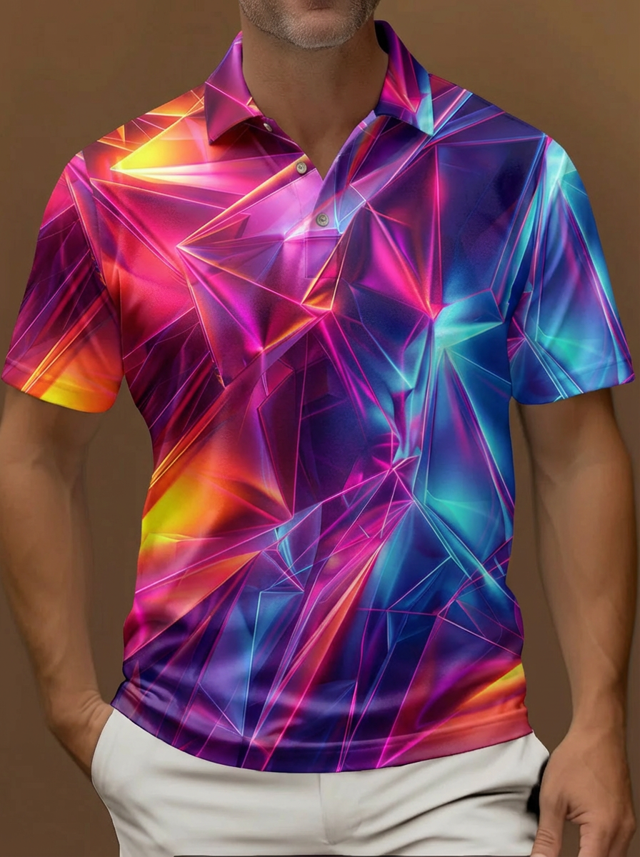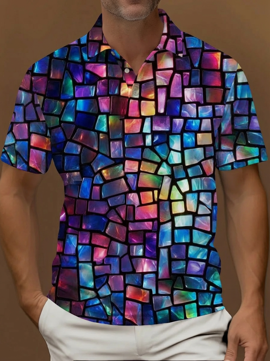 Abstract Colorful Geometric Shapes Rainbow Glass Pattern Printing Short Sleeve Polo