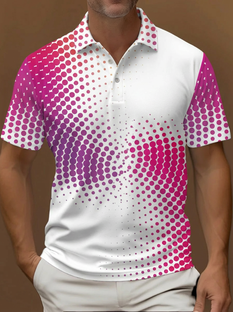 White Pink Optical Illusion Art Polka Dots Geometric Pattern Printing Short Sleeve Polo