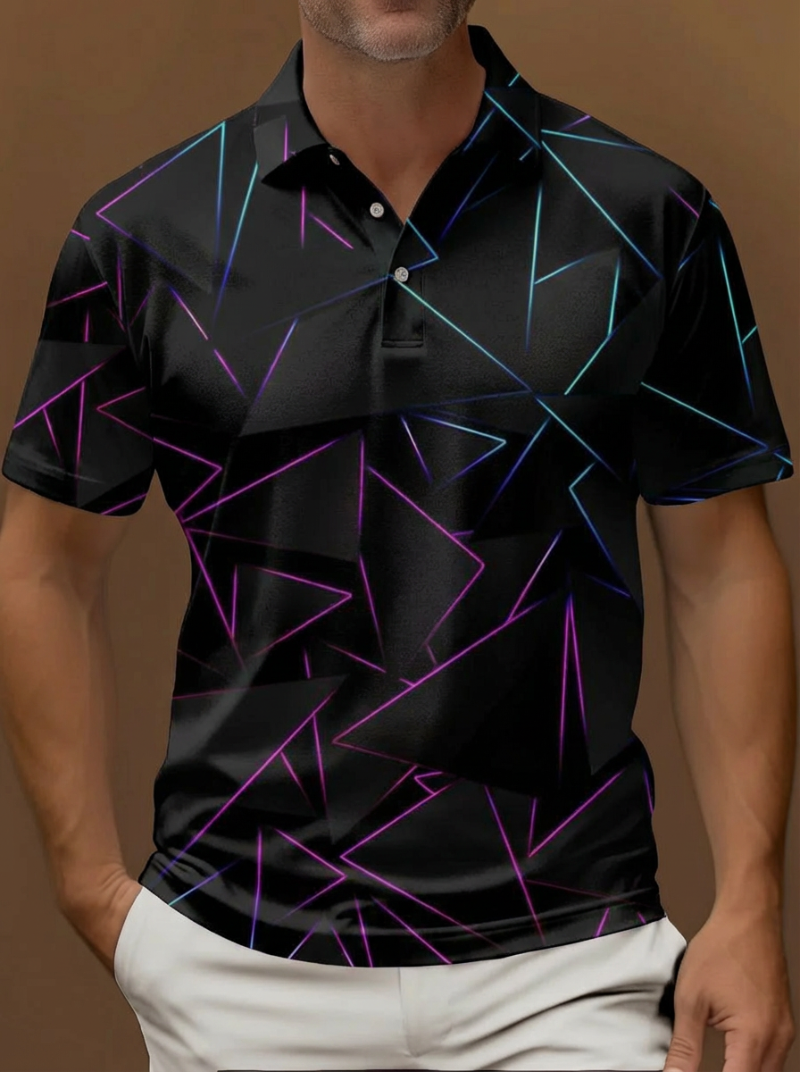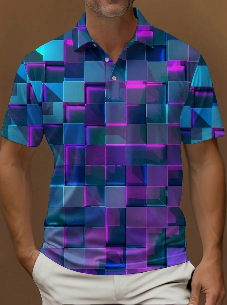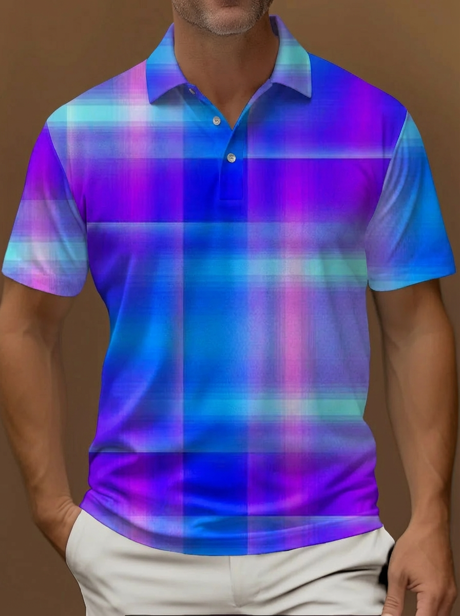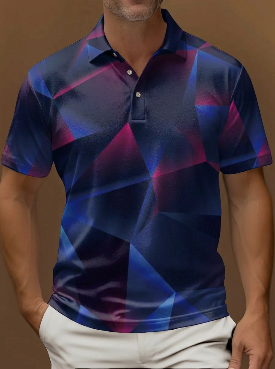 Gradient Blue-Purple Geometric Business Printing Short Sleeve Polo