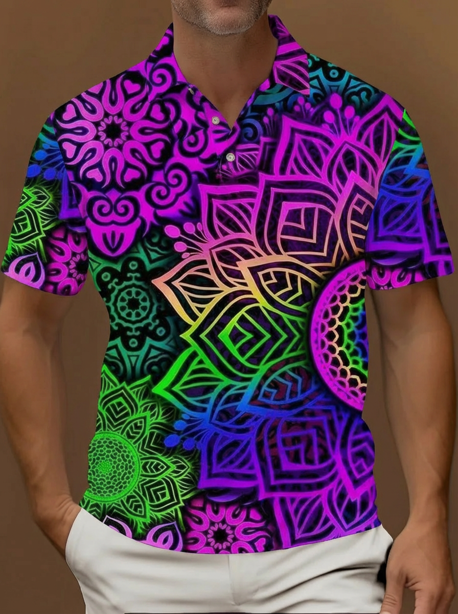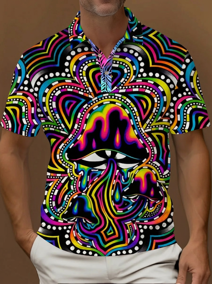 Hippie Psychedelic Colorful Mushroom Flower Printing Short Sleeve Polo