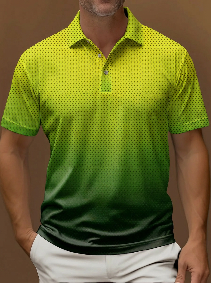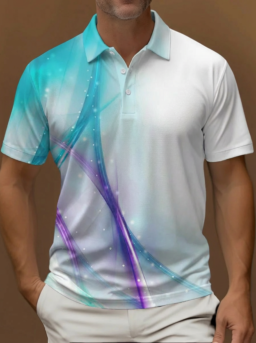 Retro Texture Men's Polo Shirt Gradient Aurora Art Stretch Comfort Basic Short Sleeve Polo Shirt