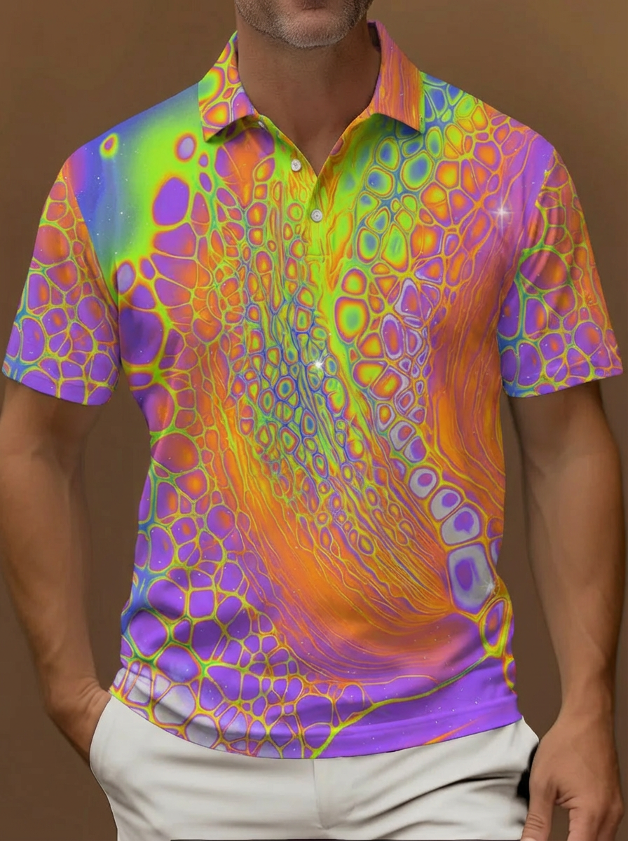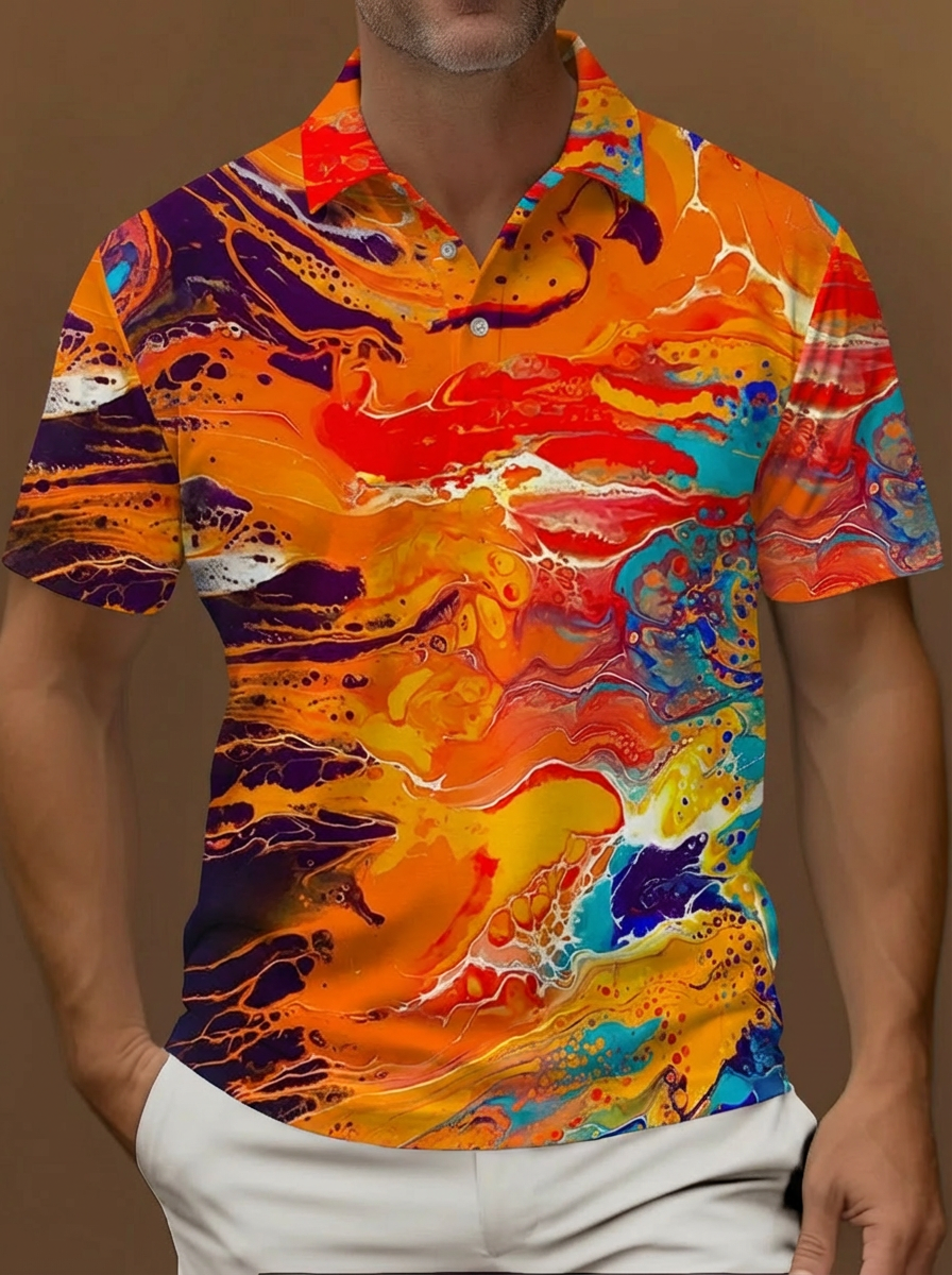 Retro Abstract Color Splatter Oil Painting Printing Short Sleeve Polo