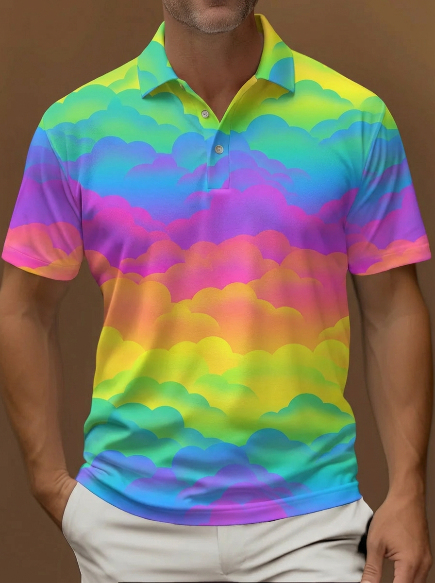 Abstract Colorful Rainbow Clouds Pattern Printing Short Sleeve Polo