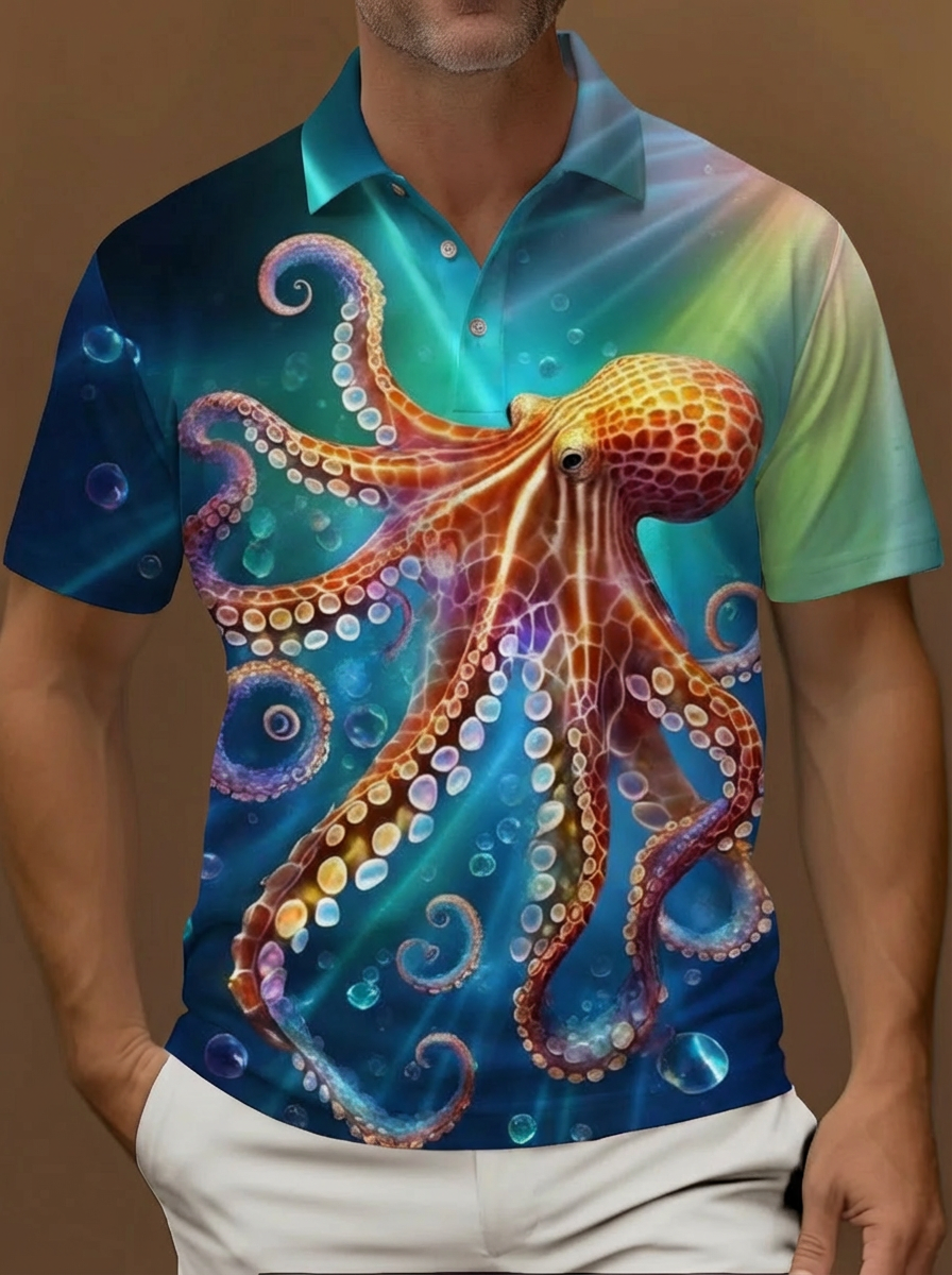 Hawaiian Rainbow Psychedelic Octopus Pattern Printing Short Sleeve Polo