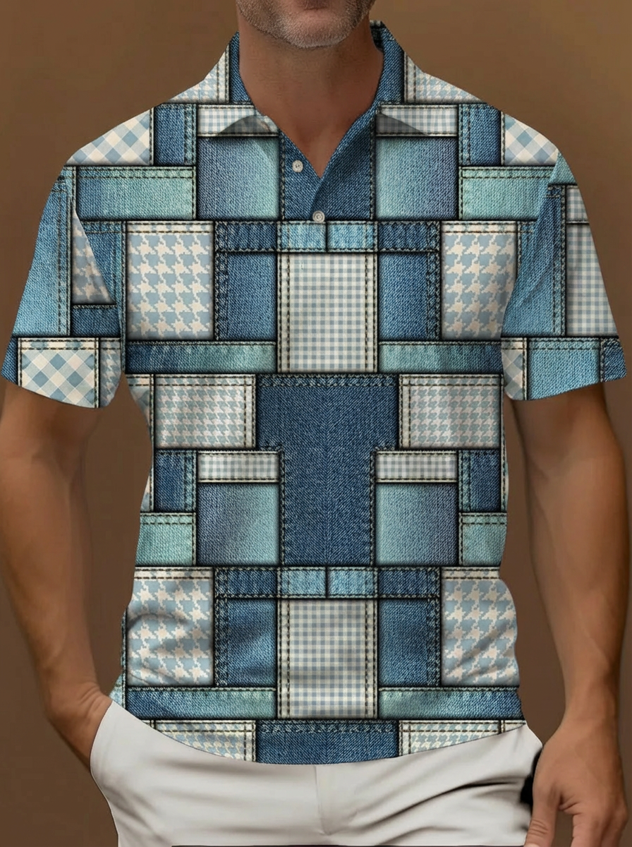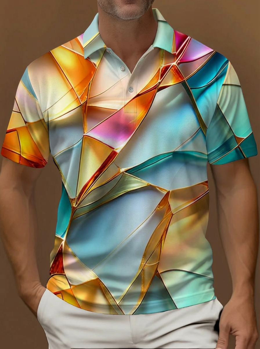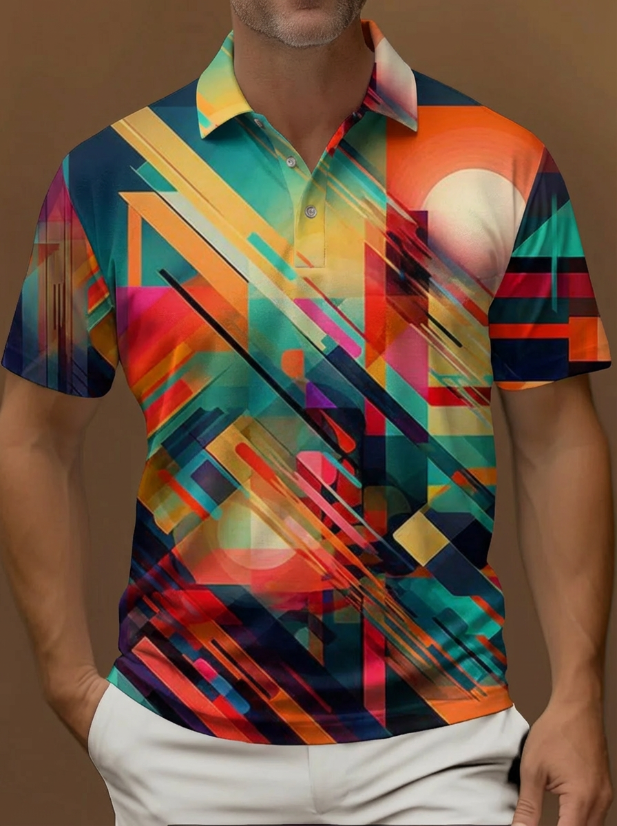 Colorful Abstract Geometry Graphic Artwork Pattern Printing Short Sleeve Polo