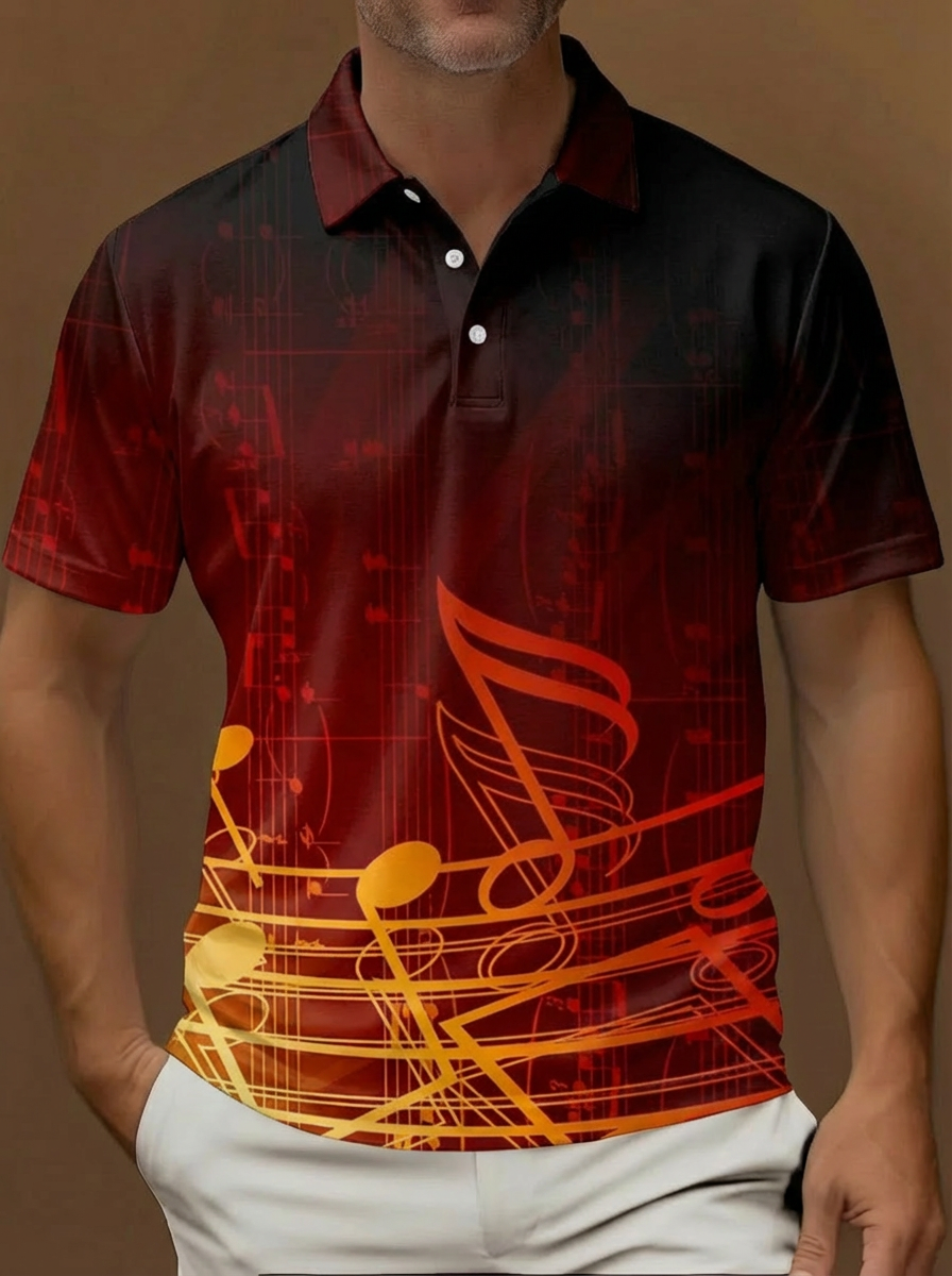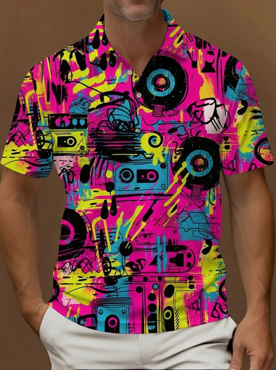 Pop Art Graffiti Style Music Elements Pattern Printing Short Sleeve Polo